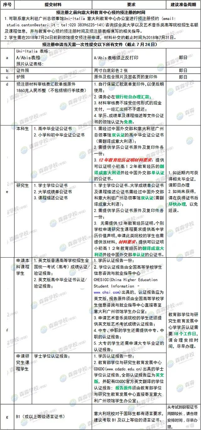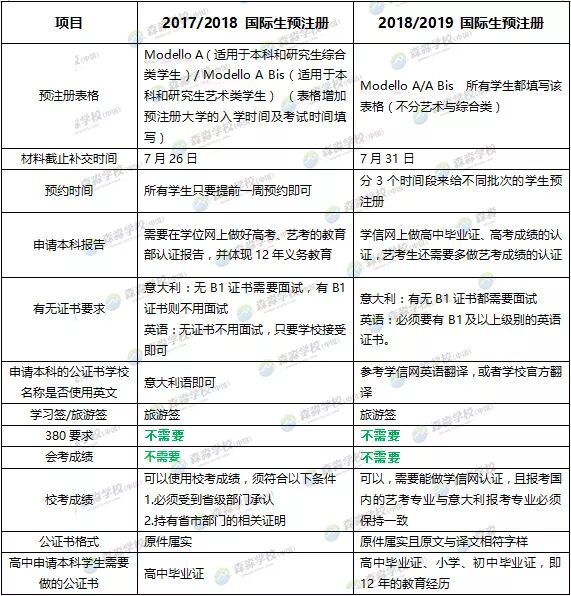2018/2019意大利国际生广州领区预注册政策已于今日正式公布。与去年相比,本年度国际生广州领区预注册政策又有一些变化。值得关注的是,本次预注册将分3个时间段来给不同批次的学生进行预注册,同时学生不论是否拥有意大利语B1证书都需要面试。 最新广州领区预注册指南文件如下图: 淼淼对广州领区的预注册指南进行深入解读,各位广州领区的考生看过来~ 广州领区新旧政策深入对比 预约时段 淼淼特别精心做了一个2018年意大利国际生广州领区预注册准备攻略,以便帮助更多学生准备2018/2019国际生的申请。请大家认真阅读,速速着手准备起来。根据历史情况表明,越早准备材料,后期应对调整更从容,也避免了很多意外情况的发生。